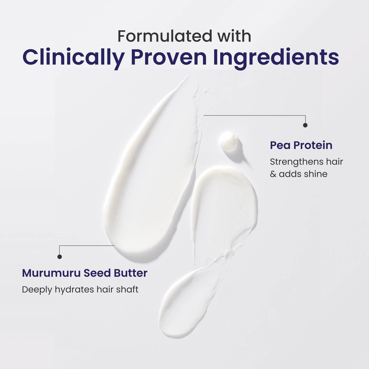 Aqua, Cetearyl Alcohol, Behenyl Alcohol, Brassicamidopropyl Dimethylamine, Cetyl Esters, Astrocaryum Murumuru Seed Butter, Hydrolyzed Pea Protein and Aqua, Isosacchaide Isomerate, Isoamyl Laurate, Orbignya speciosa Kernel Oil, Phenoxyethanol, Guar Hydroxypropyltrimonium Chloride, Ethylhexylglycerin, Aspartic Acid, Fragrance
