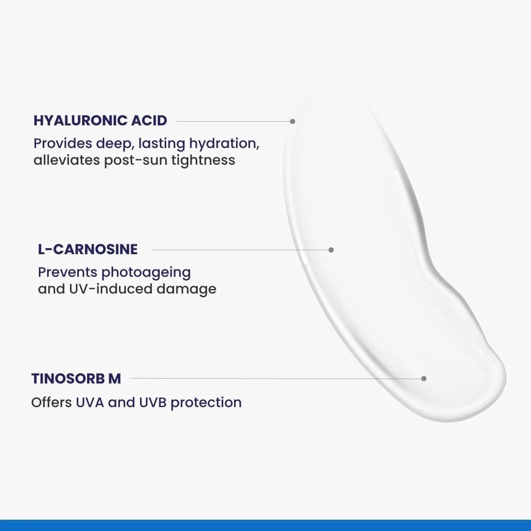 Can I skip moisturiser while using this sunscreen? The sunscreen is formulated with Hyaluronic Acid and hydrates the skin effectively, however, it is recommended to use a moisturiser separately, especially if you have dry skin. While a hydrating sunscreen adds a layer of hydration to the skin, it should not be used as a substitute for a moisturiser, which helps hydrate and maintain the skin barrier.
