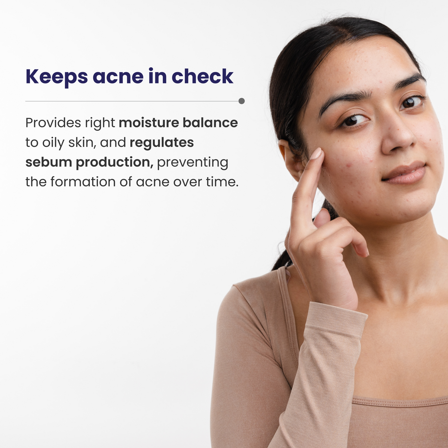 It helps prevent acne breakouts over time by regulating sebum production and providing the right moisture balance to the skin.