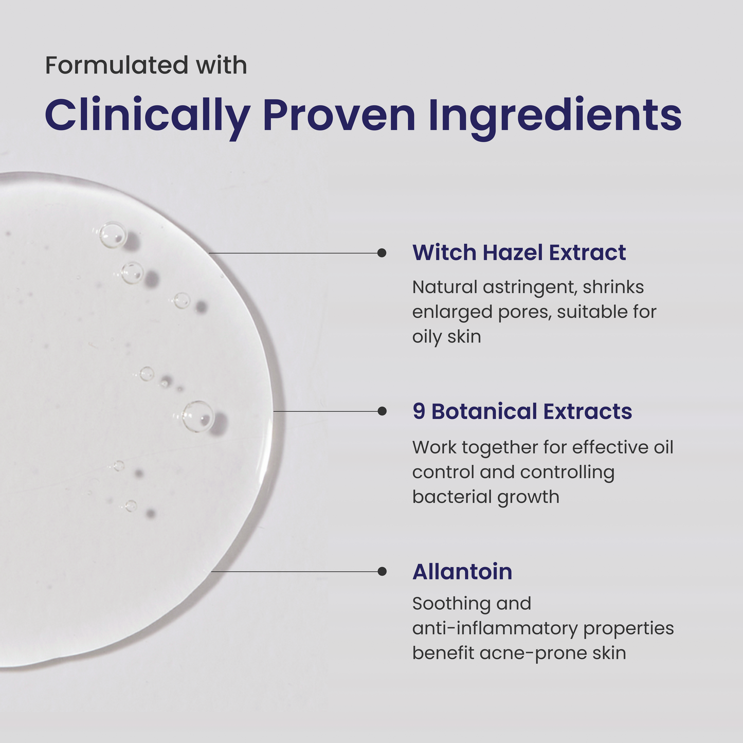Tightens enlarged pores | Regulates oil production | Retains moisture & pH balance